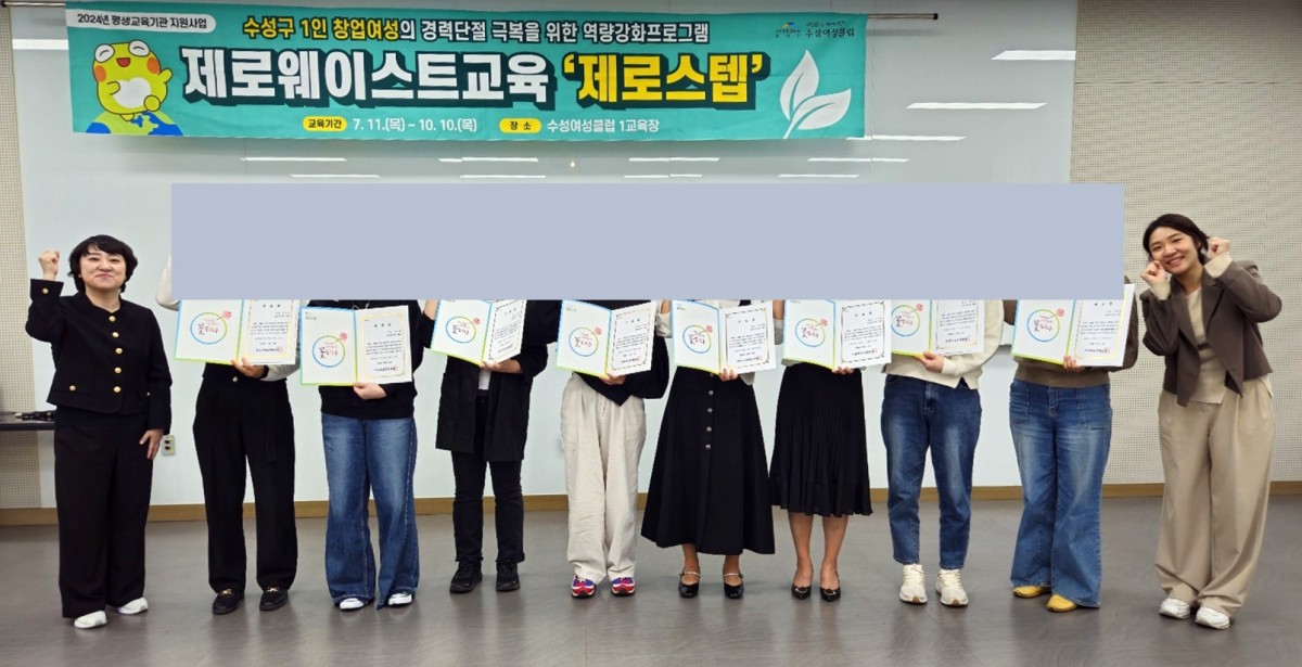 [2024. 10. 10.] (평생교육기관지원사업)제로웨이스트교육"제로스텝" 수료식 본문 .. 페이스북 공유 트위터 공유 구글+ 공유 목록 이전글[2024. 10. 12.] (경력단절예방지원사업)여성고용유지지원:커리어우먼 네트워킹데이 24.10.15 다음글[2024. 10. 8.] (경단)우리회사 워크샵:AI기반 디지털 패션산업 마케팅 전략 워크샵 24.10.10 댓글목록 댓글목록 등록된 댓글이 없습니다.